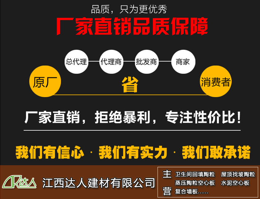 現在家里的衛生間都是下沉式的,也就是衛生間的地板會比室內地板低30-40cm左右。所以我們裝修衛生間的時候,需要對衛生間進行回填。那么,在江西進賢縣哪里可以買到衛生間回填陶粒?接下來由江西達人建材有限公司簡單介紹一下。